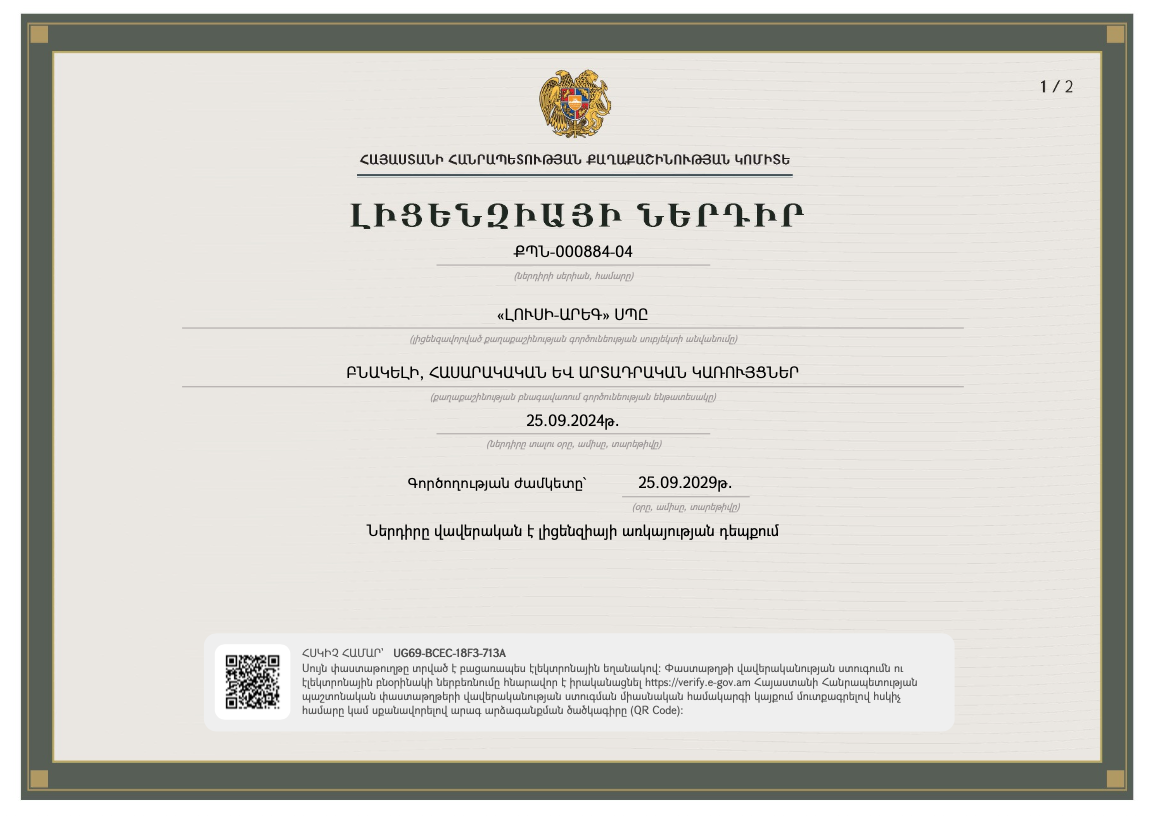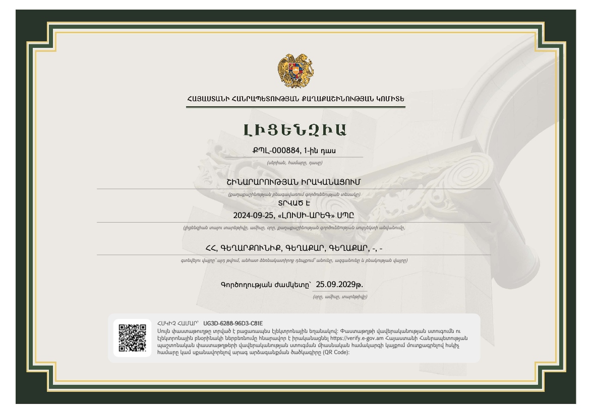 Լուսի Արեգ շինարարություն, որ խոսում է՝ բարձր որակով, խորը պատասխանատվությամբ, վստահության վրա հիմնված ապագայով։